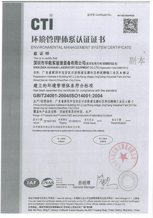 环境管理体系认证证书
